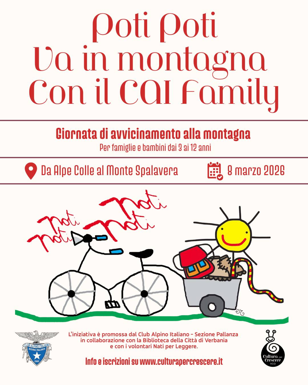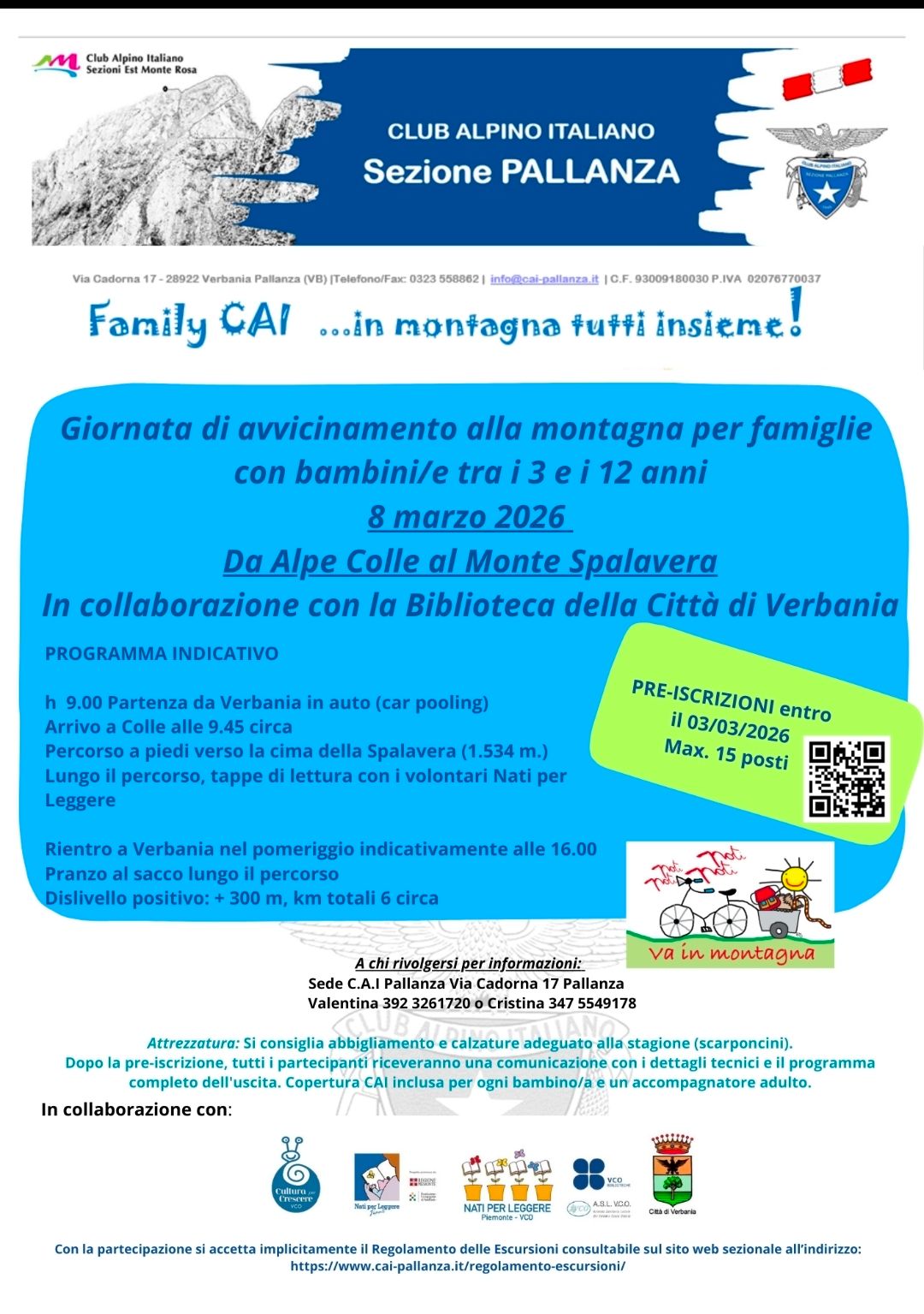 Dopo la pre-iscrizione tutti i partecipanti riceveranno una comunicazione con i dettagli tecnici e il programma completo dell'uscita. Copertura CAI inclusa per ogni bambino/a e un accompagnatore adulto.