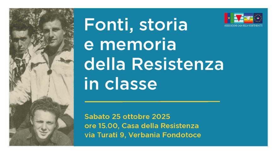 Incontro teorico e laboratoriale Fonti, storia e memoria della Resistenza in classe, per un bilancio e una discussione sui risultati del convegno Sguardi e racconti. Narrare e rappresentare la storia delle resistenze attraverso la fotografia. L'incontro, pensato in primo luogo per insegnanti, ma aperto a tutti gli interessati, è finalizzato alla condivisione di spunti didattici, metodologie, pratiche per un utilizzo critico delle fonti fotografiche a scuola. A cura e con la partecipazione di Sonia Castro e Lisa Fornara (Dipartimento formazione e apprendimento della Scuola universitaria professionale della Svizzera italiana), di Flora Valterio (Scuola Secondaria di I grado "Gisella Floreanini" di Domodossola) e di Adolfo Mignemi (storico della fotografia).
