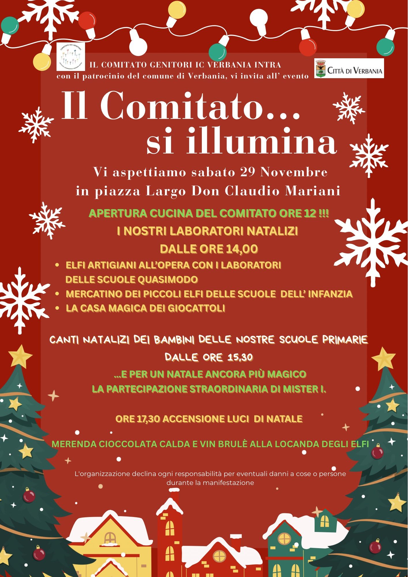 Cucina, laboratori natalizi (dalle ore 14:00), mercatino, canti natalizi dei bambini delle scuola primarie (dalle 15:30), con la partecipazione straordinaria di Mister I.
