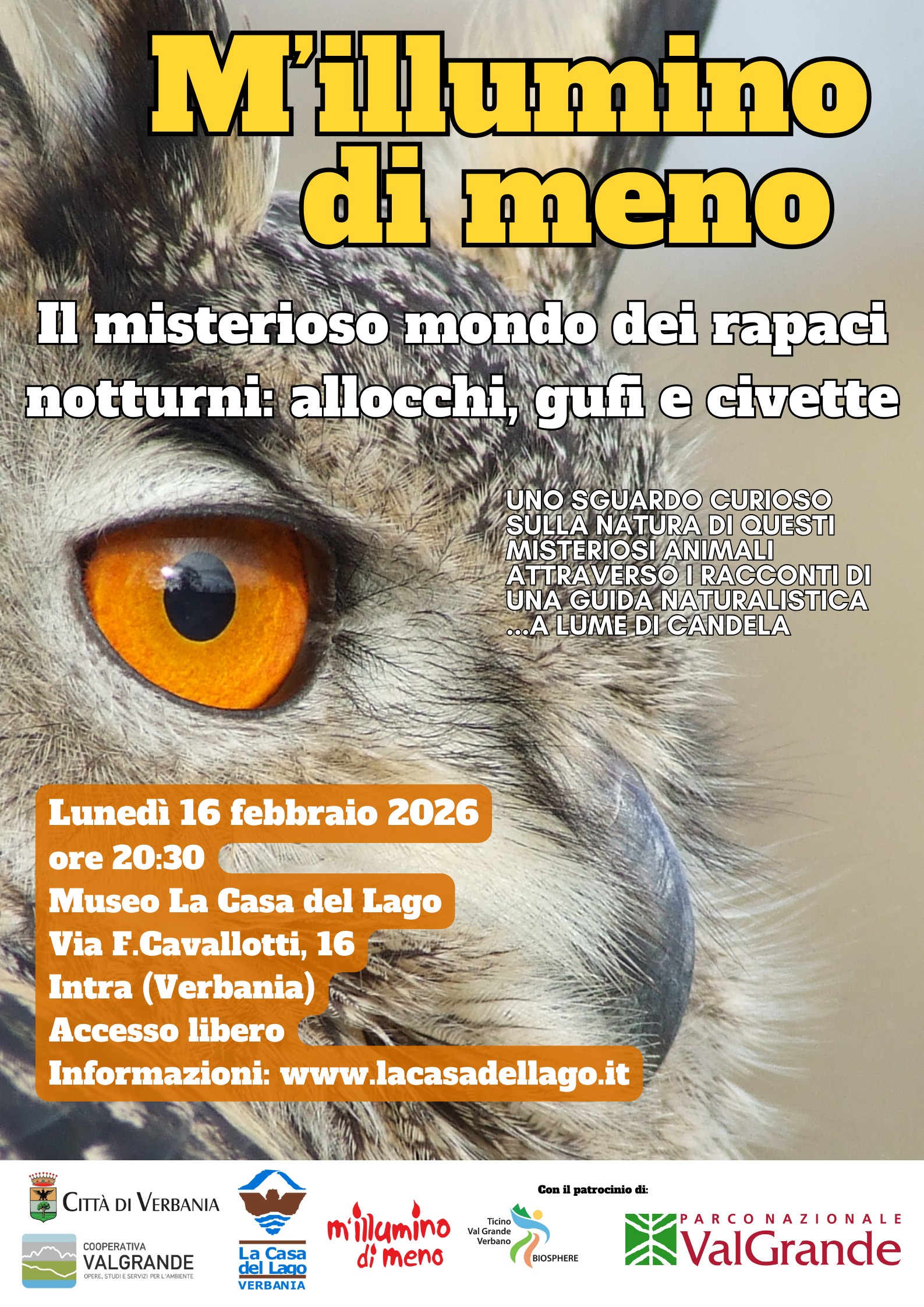 Nell'ambito di M'illumino di meno 2026, uno sguardo curioso sulla natura dei rapaci notturno attraverso i racconti di una guida naturalistica... a lume di candela.