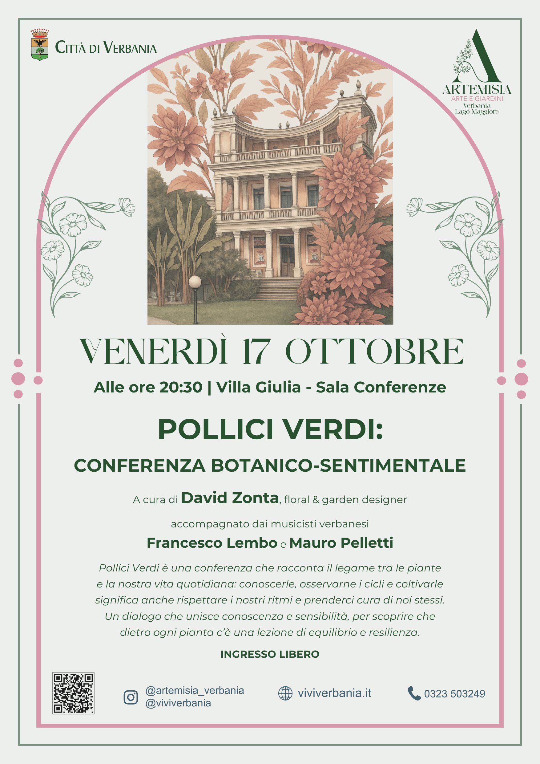conoscerle, osservarne i cicli e coltivarle significa anche rispettare i nostri ritmi e prenderci cura di noi stessi. Un dialogo che unisce conoscenza e sensibilità, per scoprire che dietro ogni pianta c’è una lezione di equilibrio e resilienza. L’iniziativa è organizzata da David Zonta, floral & garden designer, accompagnato dai musicisti verbanesi Francesco Lembo e Mauro Pelletti.