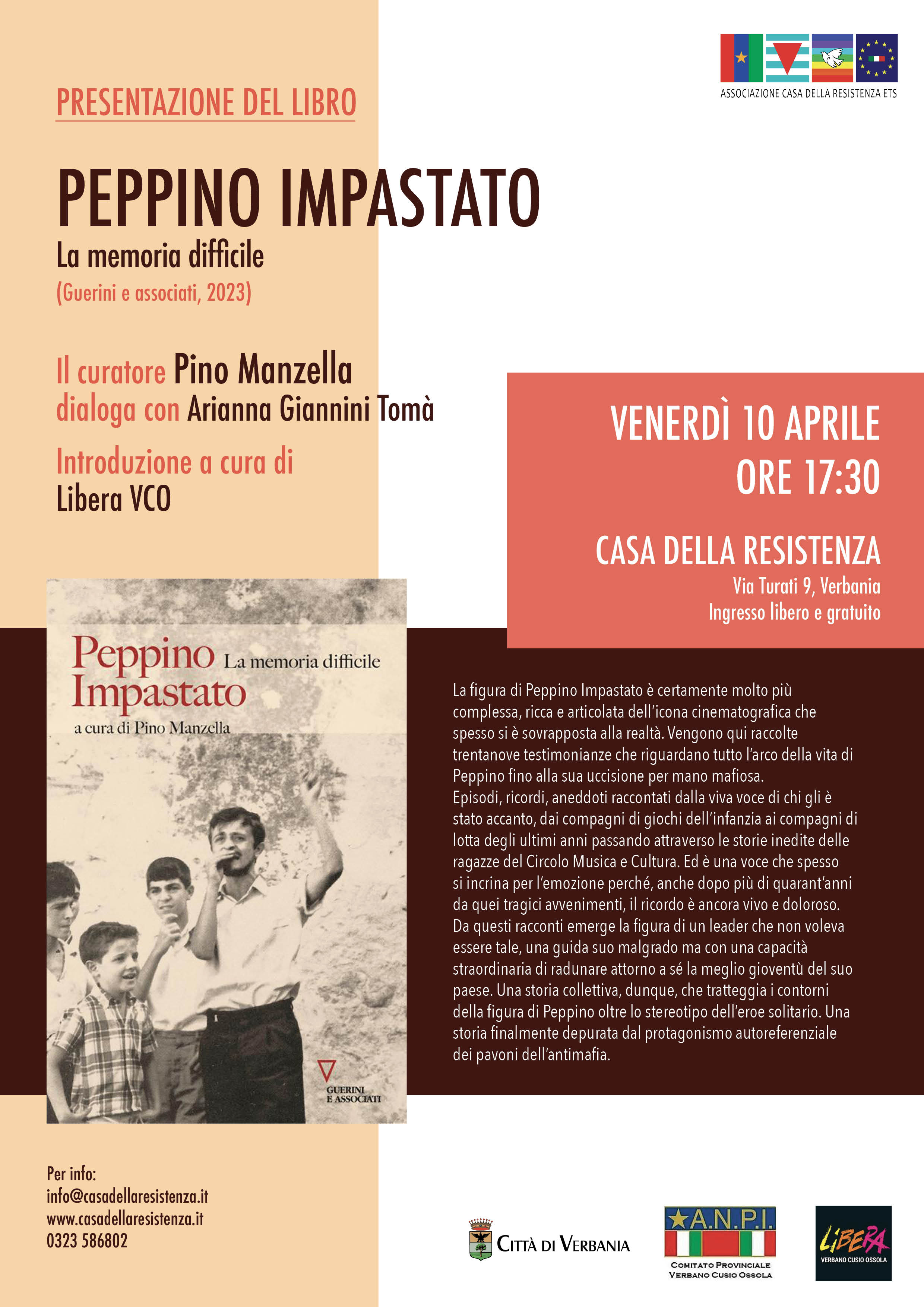 Presentazione del libro Peppino Impastato. La memoria difficile (Guerini e associati, 2023). Durante l'evento il curatore Pino Manzella dialogherà con Arianna Giannini Tomà.