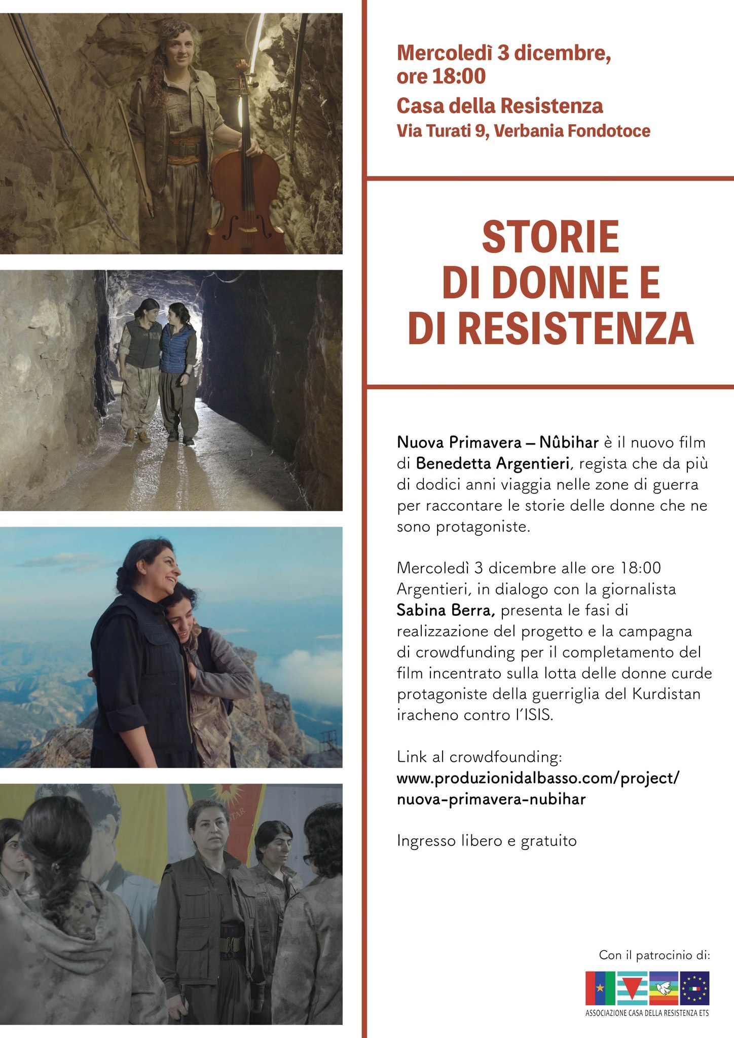 Mercoledì 3 dicembre alle ore 18:00 Argentieri, in dialogo con la giornalista Sabina Berra, presenta le fasi di realizzazione del progetto e la campagna di crowdfunding per il completamento del film incentrato sulla lotta delle donne curde protagoniste della guerriglia del Kurdistan iracheno contro l'ISIS.