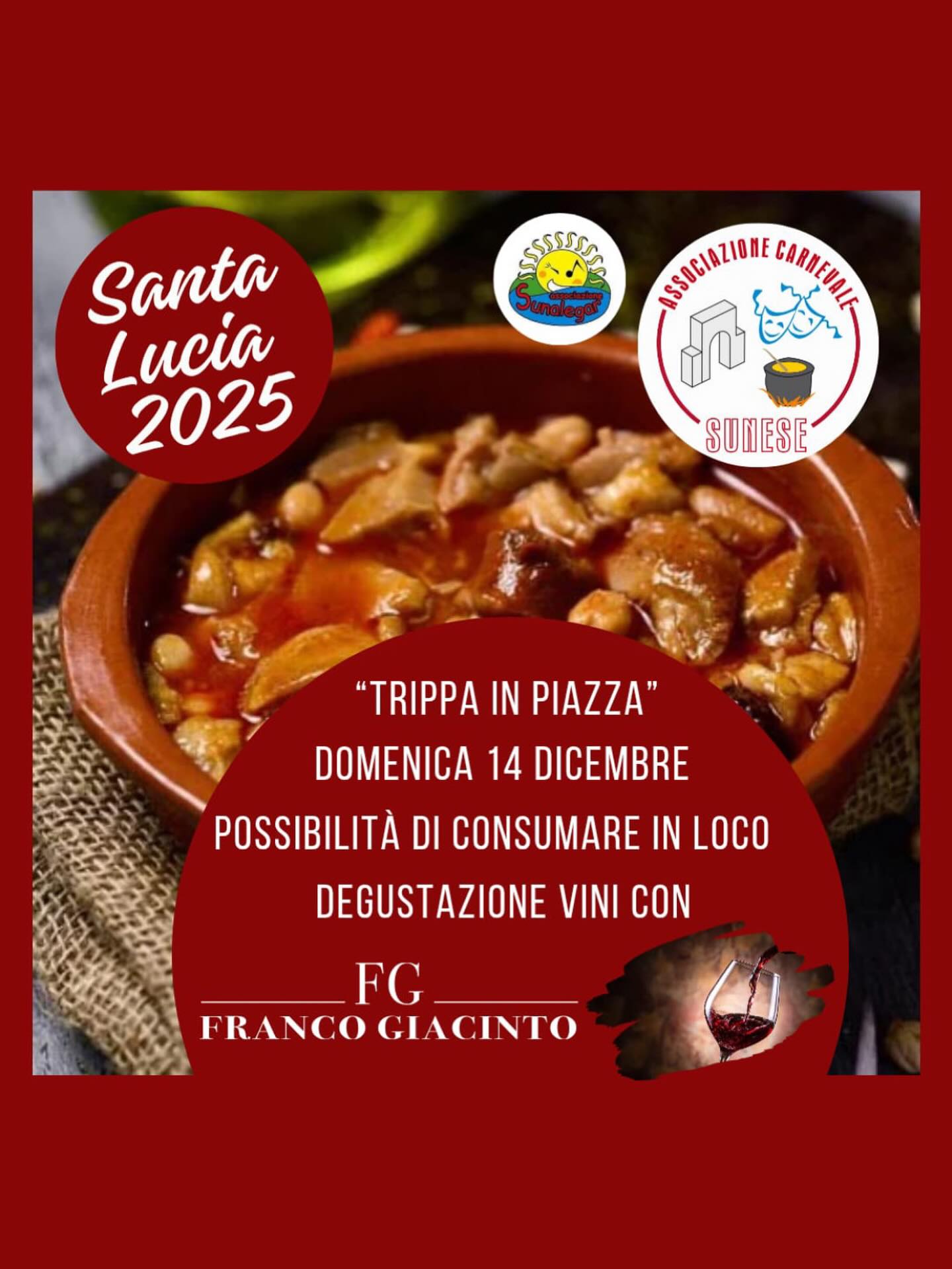 A partire dalle ore 12 sarà possibile gustare la tradizionale trippa in minestra preparata con passione e servita per tutti! Saranno allestiti dei tavoli per poterla assaporare in riva al lago accompagnata dai vini Franco Giacinto.