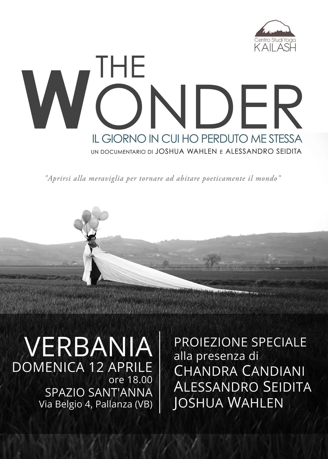 Briciole di pane Home Eventi THE WONDER - Il giorno in cui ho perduto me stessa di: Comune di Verbania THE WONDER - Il giorno in cui ho perduto me stessa Arte e Cultura 12 Aprile Ore 18:00 / Durata 2 ore Domenica 12 aprile 2026ore 18:00Spazio Sant'Anna - Verbaniaun documentario di ALESSANDRO SEIDITA e JOSHUA WAHLENPROIEZIONE SPECIALEalla presenza diCHANDRA CANDIANIALESSANDRO SEIDITAJOSHUA WAHLEN Donwload allegato